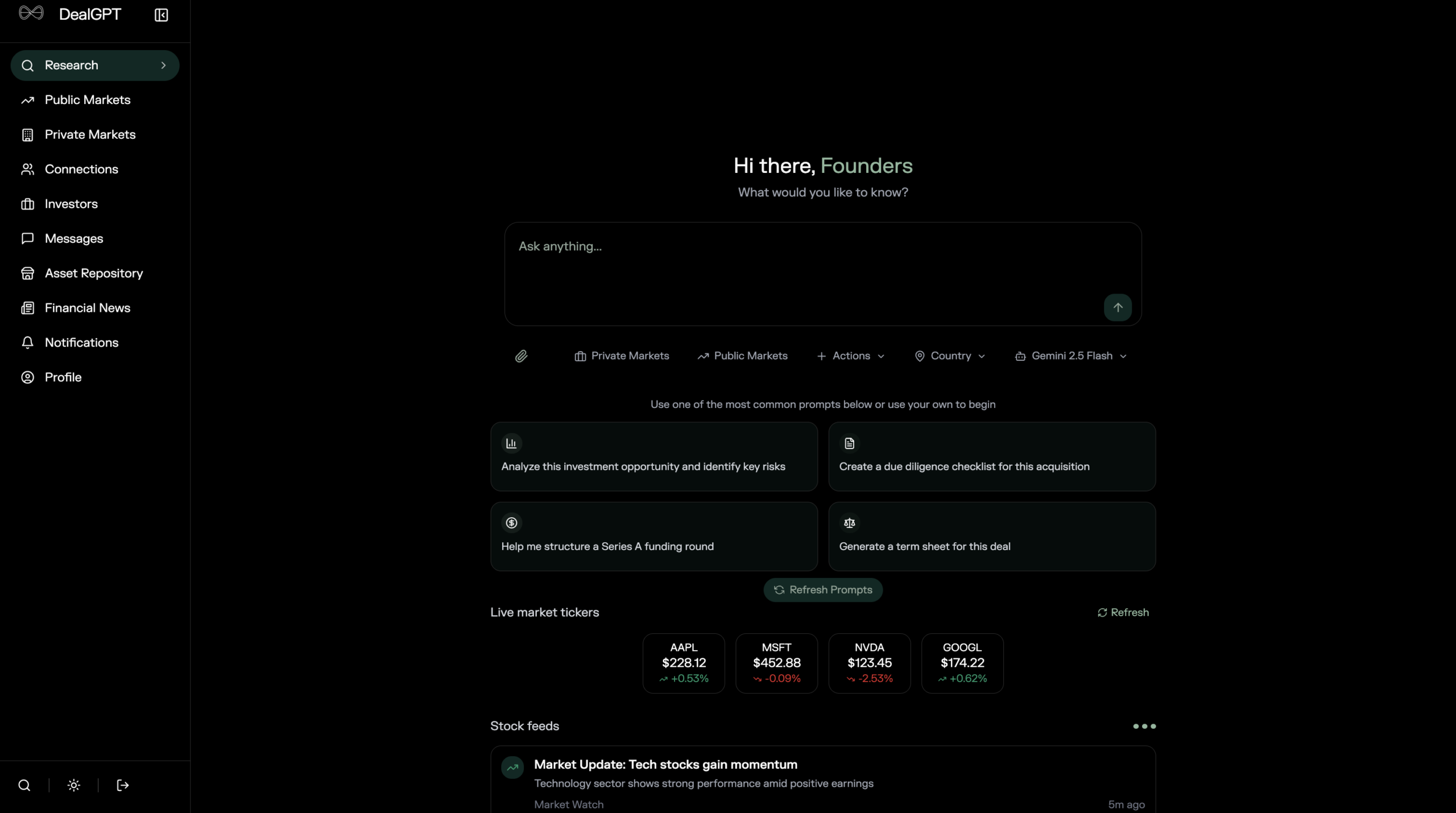 DealGPT connects investors, businesses, and professionals across global markets. By breaking down geographic barriers, we enable seamless cross-border transactions, unlocking new opportunities for growth and innovation.